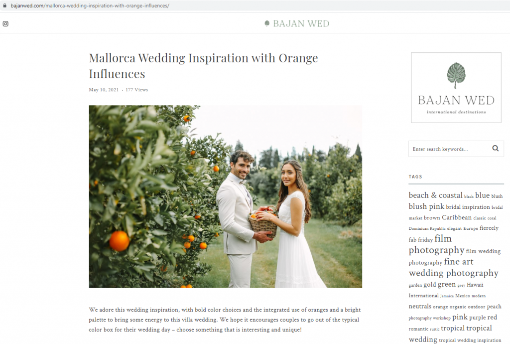 The blog Bajan Wed has published Mallorca Wedding Inspiration with Orange Influences.