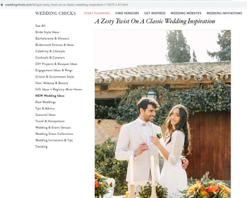 The blog WEDDING CHICKS has published A Zesty Twist On A Classic Wedding Inspiration