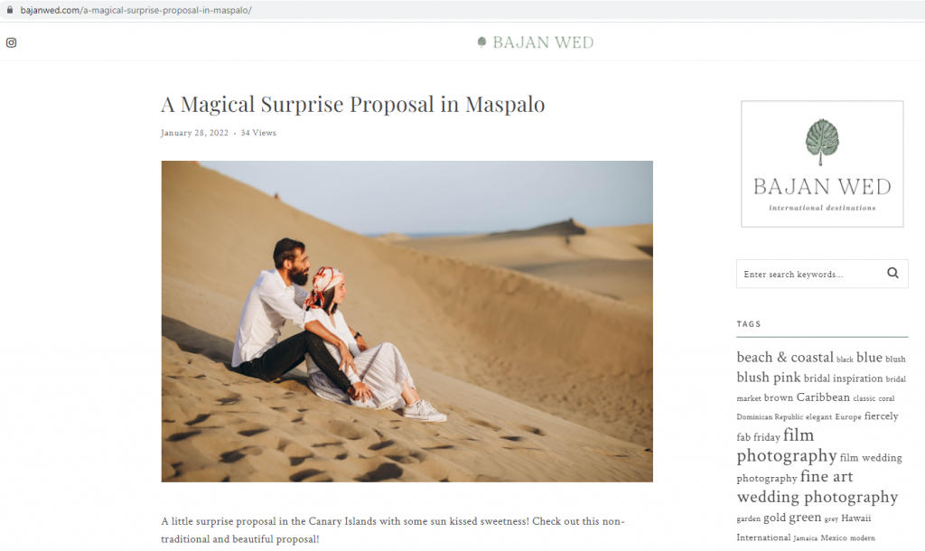 The blog Bajan Wed has published A Magical Surprise Proposal in Maspalomas.